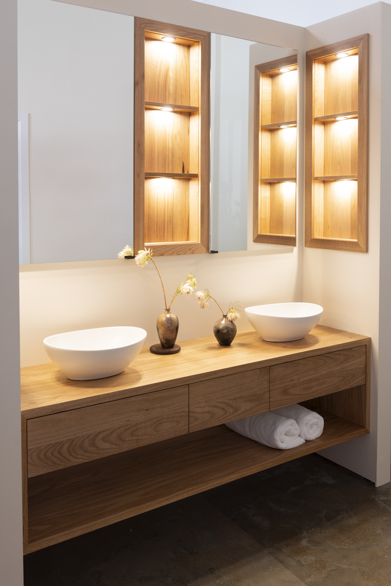 Complementing the design of the Ivy vanity, these timber-crafted light boxes give ambience, and importantly, more options for storage. Let there be light, and let the Ivy enhance your space with added warmth.